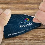 Version Papier assure l’impression de carte de visite en quadri ou Pantone®, carte recto ou recto verso, dans différents formats (une carte classique ou alors une carte de visite carré ou ronde, grand format…), imprimées sur papier texturé, avec ou sans finitions.